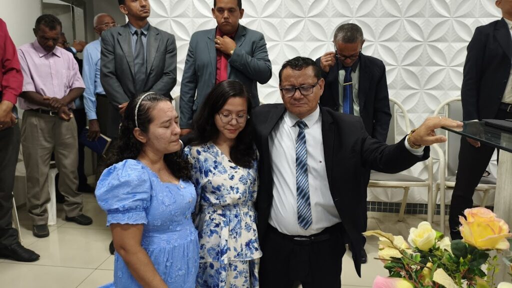 Quebrando o protocolo da formalidade, o Pastor Delson Silva chamou sua família ao altar. Ali, diante da igreja que lideram, pastor, esposa e filhos se colocaram de joelhos.
